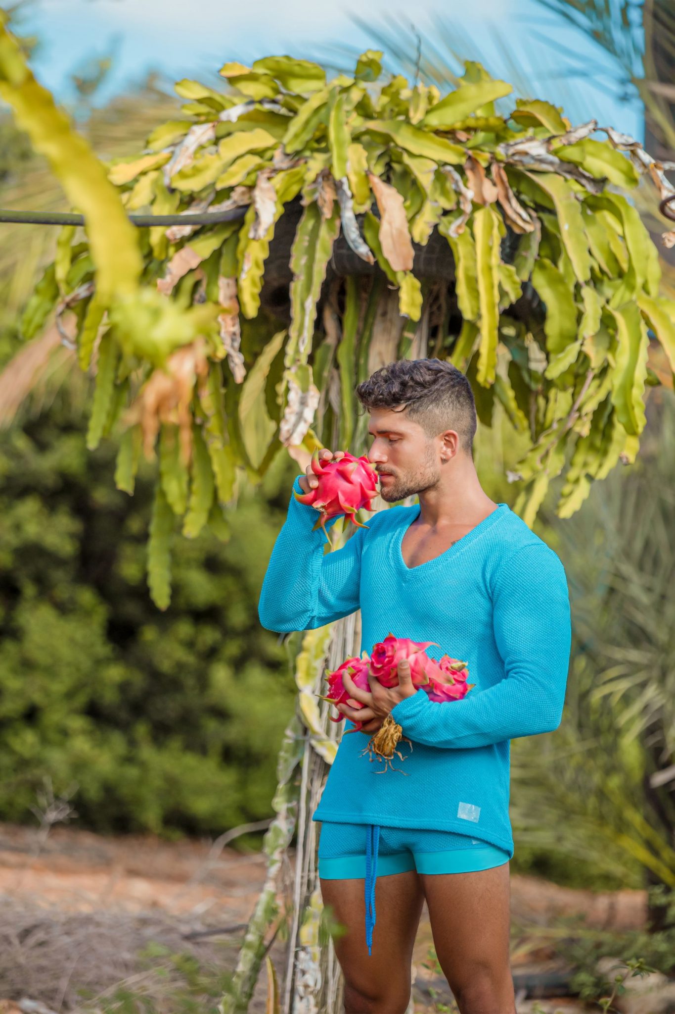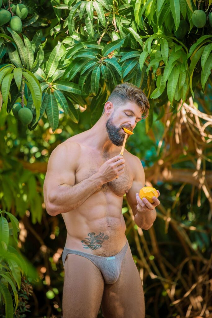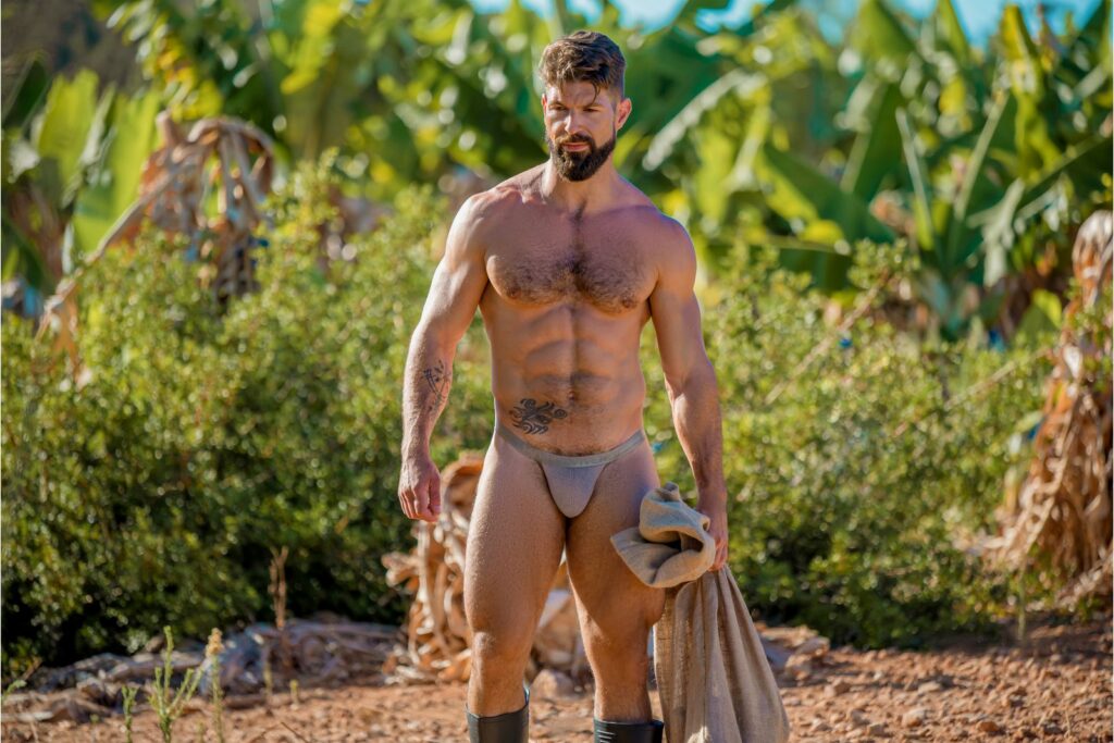 Made of cotton polyester knitted fabrics, the range comprises briefs, tanga briefs, low-cut briefs, jockstraps, boxers, bottomless briefs, tank-tops, shorts, long-sleeve t-shirts, and leggings.  The styles come in either light-blue, khaki, or camel.